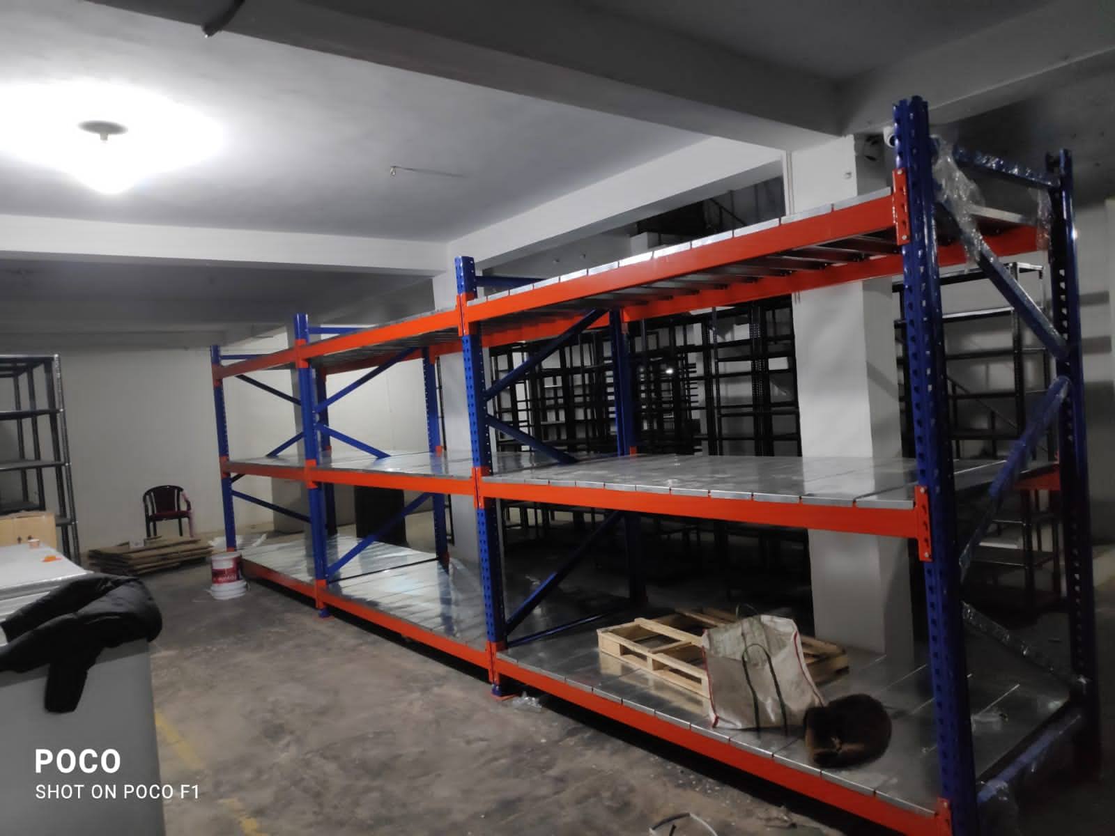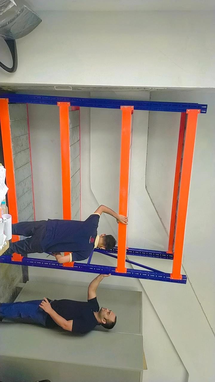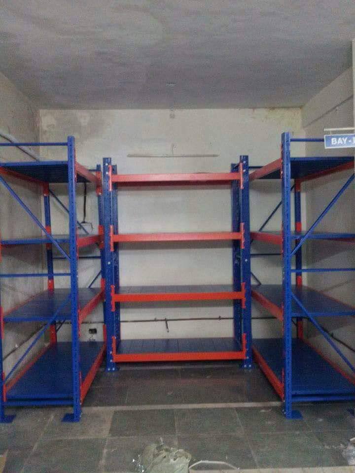 Heavy duty racking system for warehouses with a loading capacity of 1 tonne per level these racks are best suitable for very heavy components and industrial units. These can be erected upto 30 feet or 10 meters in height